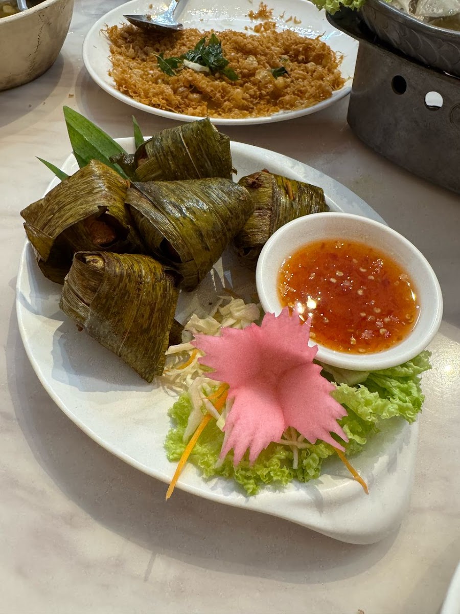 Those familiar with Thai cuisine will find plenty to enjoy on the menu. Highlights include the Nasi Goreng Tomyam, which captures that iconic Tom Yum’s sour-spicy profile with fresh seafood, and the Salted Egg Squid, where the rich salted egg sauce coats crispy squid bites for a more indulgent twist. Other dishes like the Pandan Chicken and steamed fish paired with Thai chili pastes bring texture variety and freshness to the table.